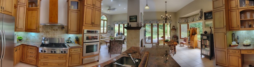This 4,500 square foot [418 square meter], 3 bedroom, 4 bath home was designed by one the Chiriqui Province’s most respected architects and features a unique open-concept layout with a bonus room at the front of house. The bonus room makes a great office with spectacular views. There is an additional large room that could be used as fourth bedroom plus gym, since it has an ensuite bathroom.